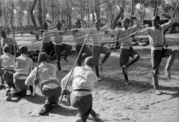 1939年,晋察冀边区抗大二分校运动大会拼刺比赛。沙飞/摄。