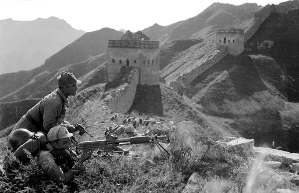 1938年,河北涞源浮图峪,八路军战斗在古长城。 沙飞/摄。