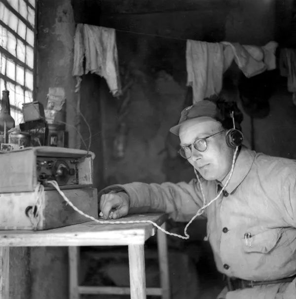 1942年,林迈可(英国人)给晋察冀军区无线电技术高级训练班讲课。 沙飞/摄。