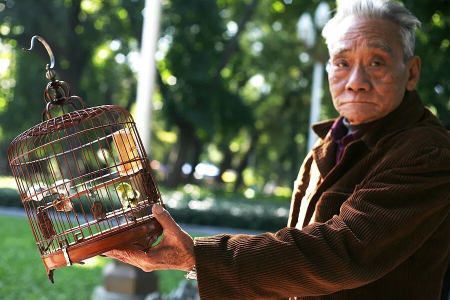 公园前,阿伯说,小朋友你也知道这是绣眼啊,我这只绣眼,可是与众不同,霸气十足,猫它都敢打!