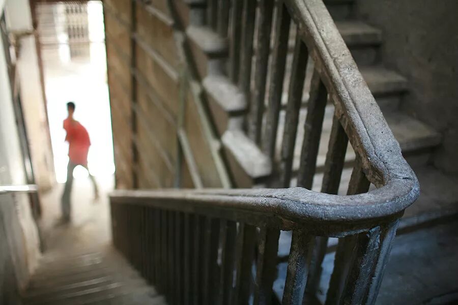 如今这里房客杂住,多被租为货物仓库。只剩楼梯,还是依稀旧时模样。