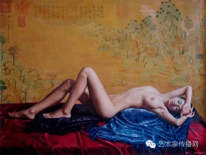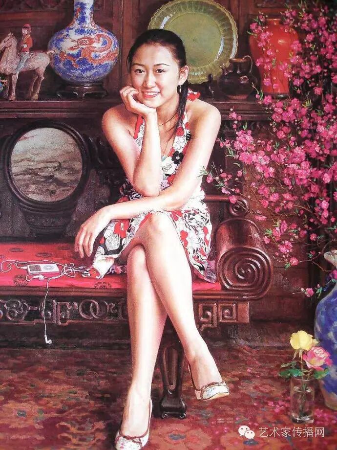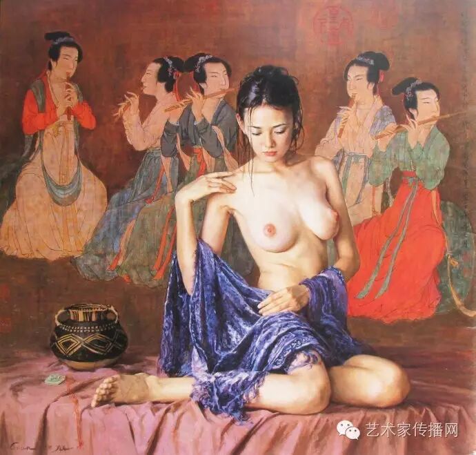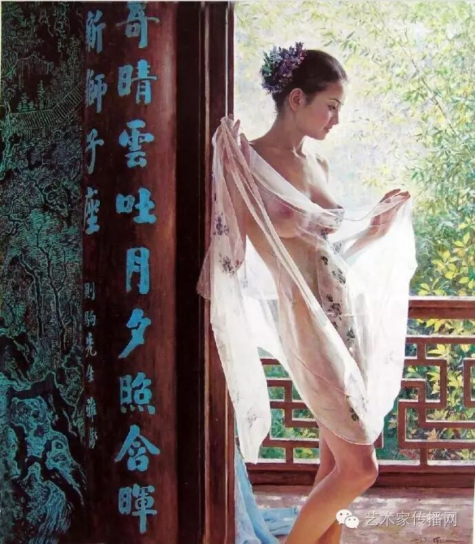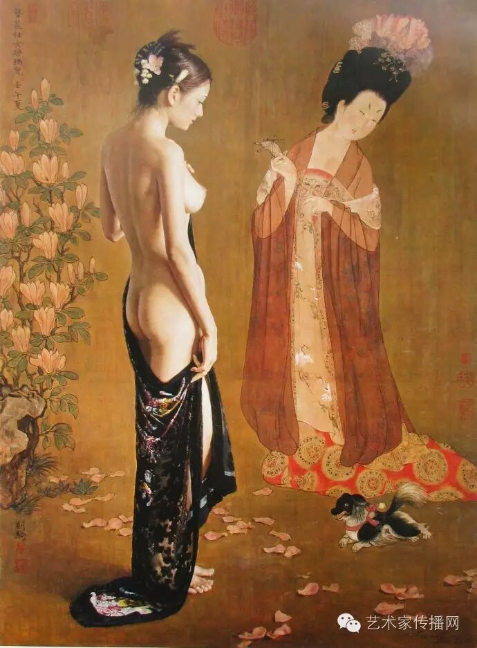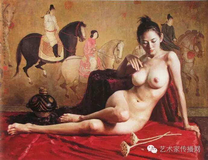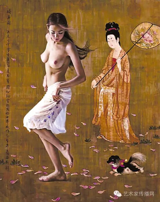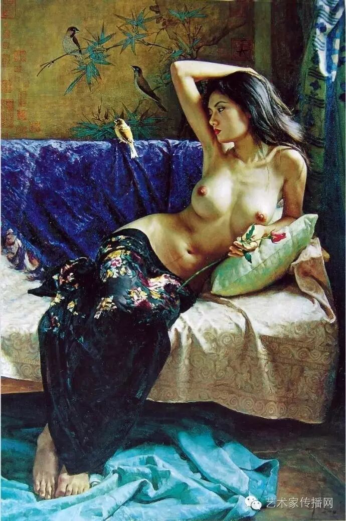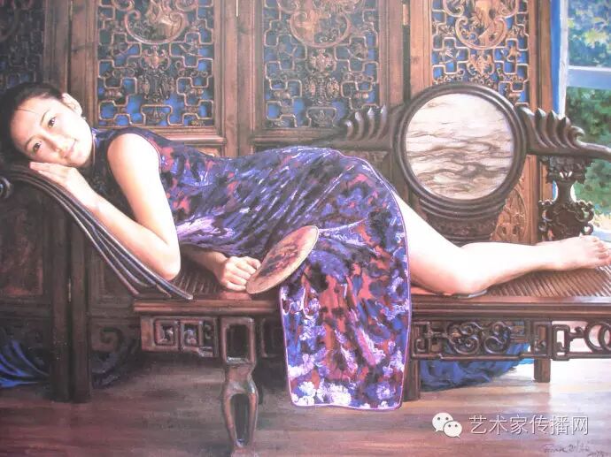 作为观赏者,面对他那细腻而又生动的油画人体,坦荡、自然的脆弱——在中国古代名画前的憩息——我们能够瞥见画中她们的灵魂。