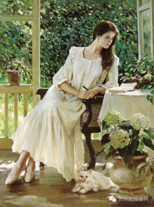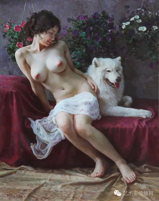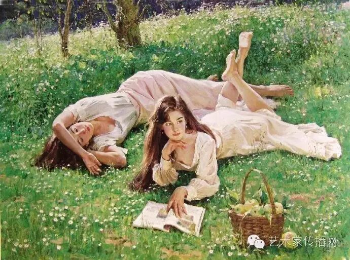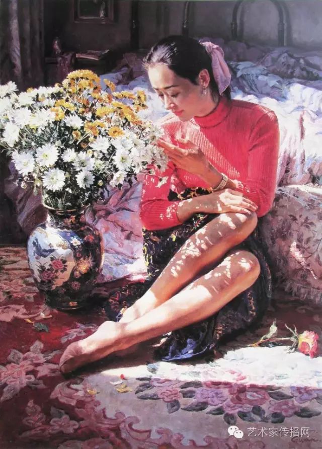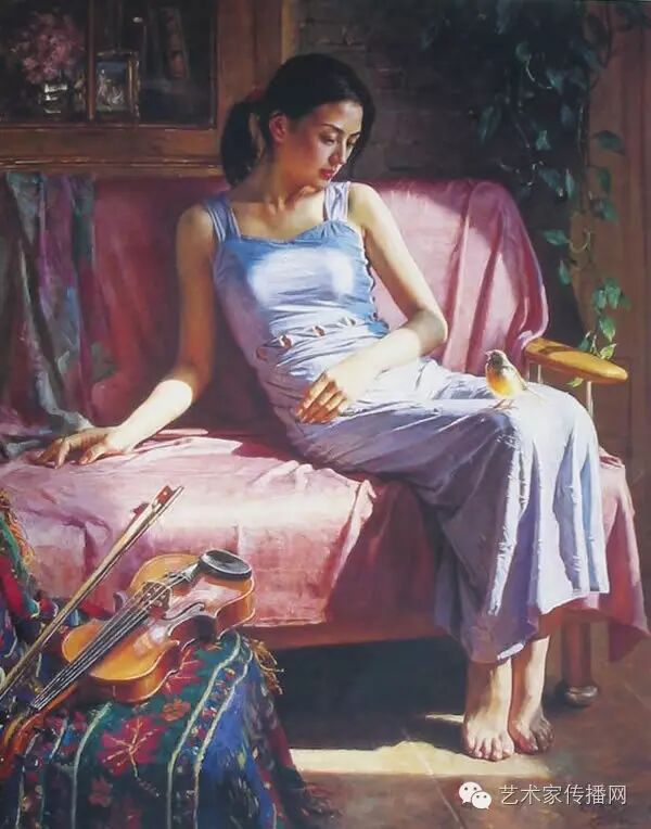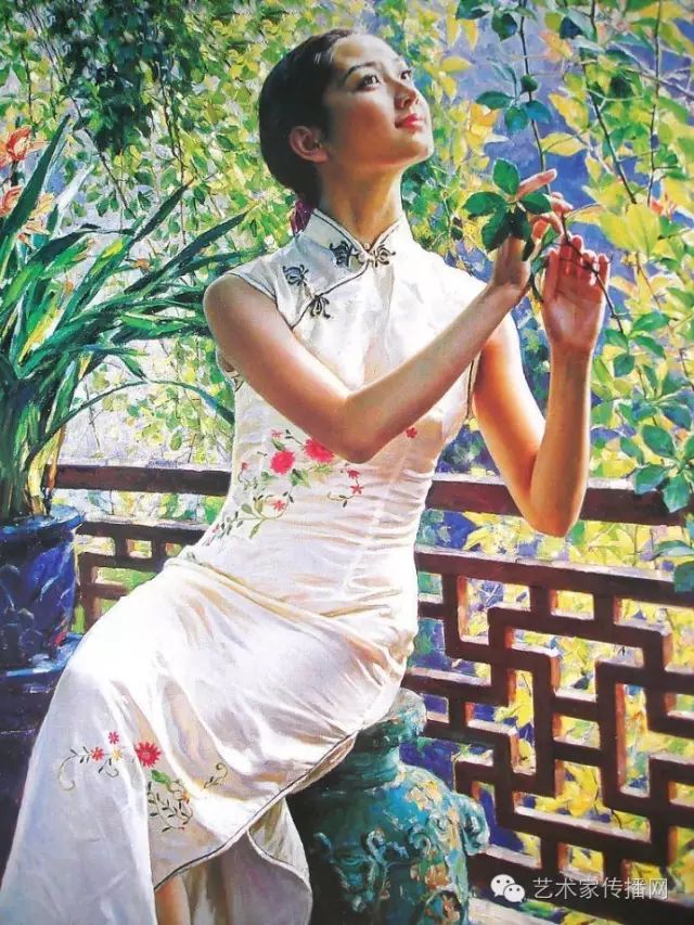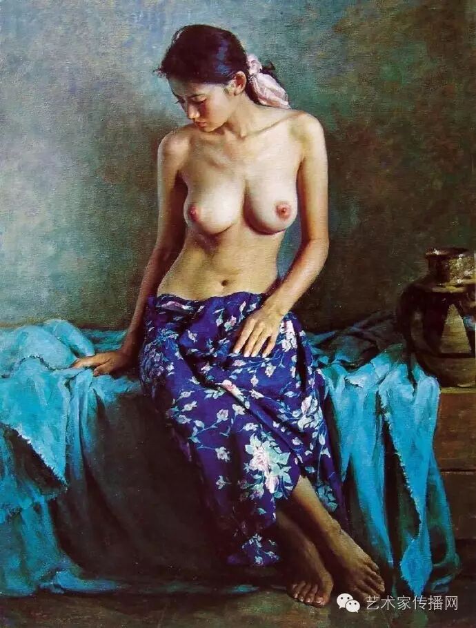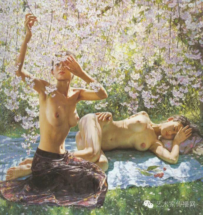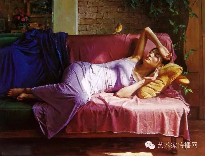 作为观赏者,面对他那细腻而又生动的油画人体,坦荡、自然的脆弱——在中国古代名画前的憩息——我们能够瞥见画中她们的灵魂。