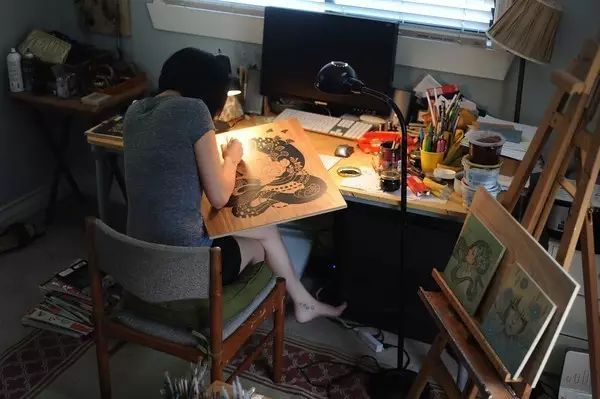 周末只要一有时间,Kawasaki就会待在家中画上一整天。