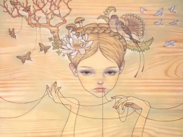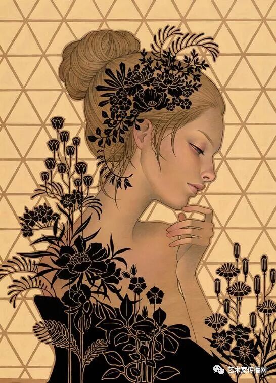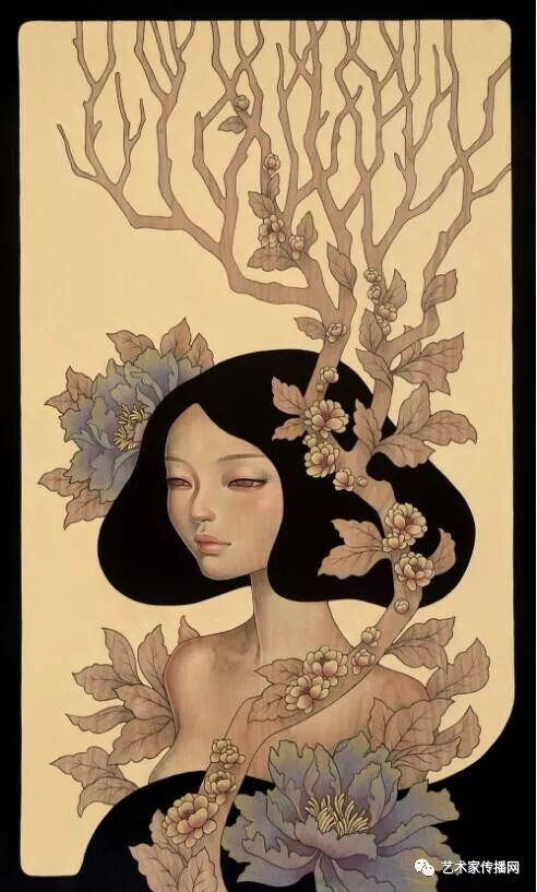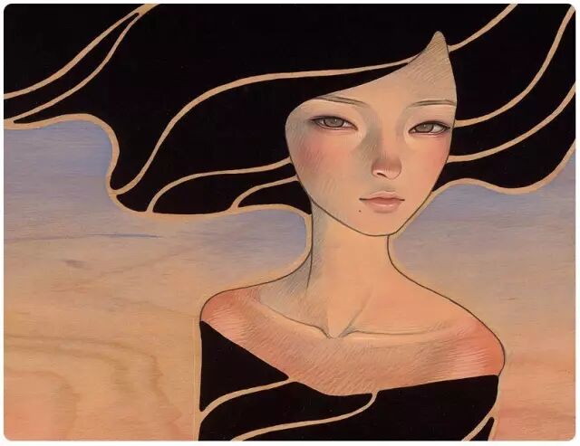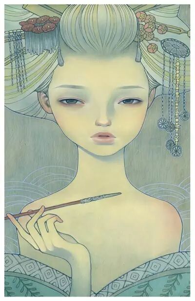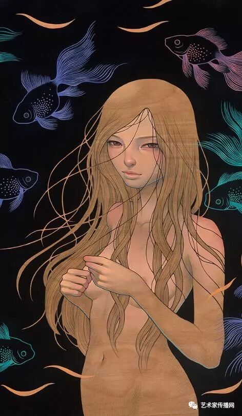 清纯、妩媚、妖娆、忧郁、冷漠、诱惑?仿佛没有一个词可以完全形容她画笔下的女孩。