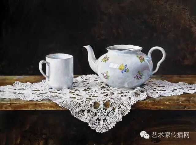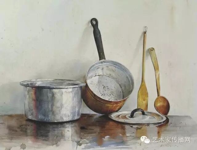他擅长运用光和影的细微变化,来表现不同材料的质感,人们常常被他作品的逼真的创作手法所震撼,一时间分不清自己看的是照片,还是画。当再三确认是水彩画后,发现作者正是把水彩的透明特质,以及对光的运用发挥到极致。