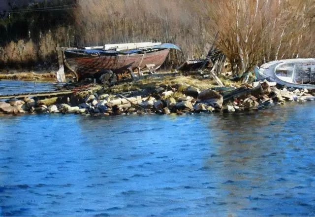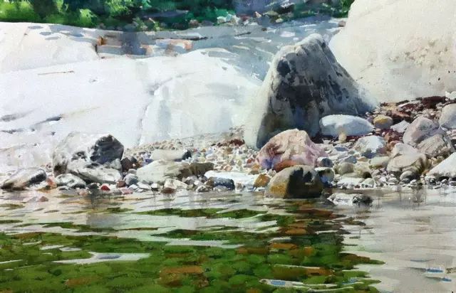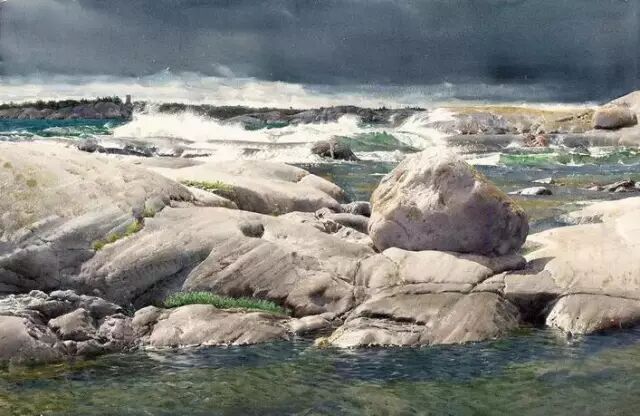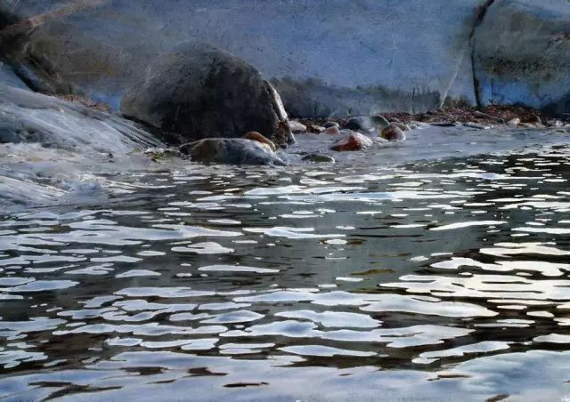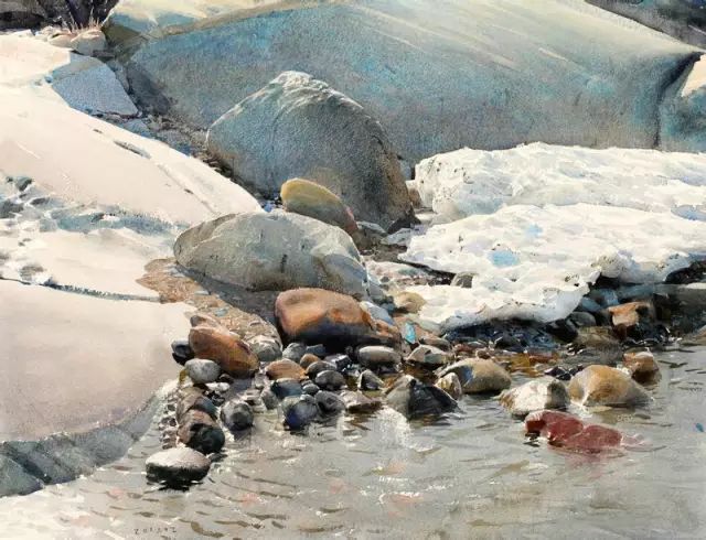 他惊人的写实手法来源于他的高超技巧,以及对水、水彩颜料的精确运用、独特感受与深刻理解。