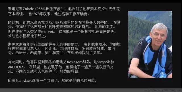 1952年出生于波兰。从小他就对绘画特别是水彩画产生了兴趣。搬到瑞典之前的1972至1978年期间,斯坦尼斯罗·佐拉兹就读于克拉科夫美术学院。他搬去瑞典的主要原因正是水彩画。超凡的绘画技术及对北欧原始风光敏锐的洞擦力,使得他成为北欧最著名的水彩画家之一。作为KRO(瑞典艺术家组织)和NAS(水彩画家协会)两大艺术组织的成员,斯坦尼斯罗·佐拉兹在瑞典甚至国外举办了多场画展。2000年,他在Winsor & Newton绘画比赛中获二等奖。
