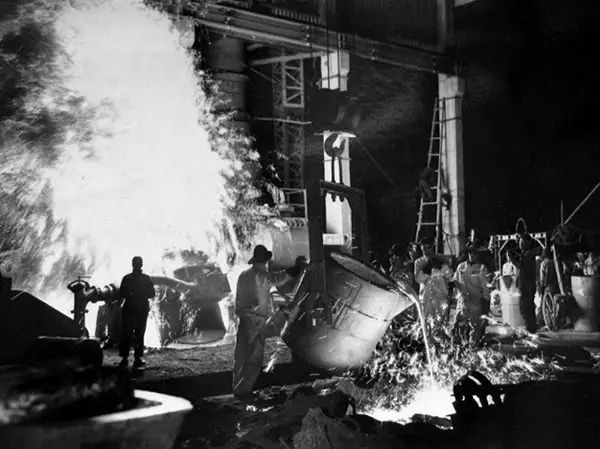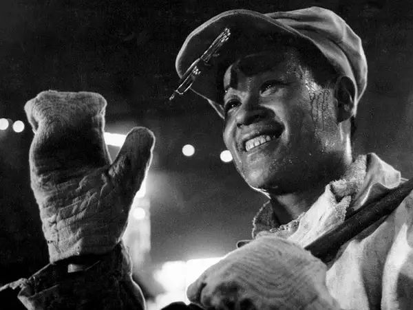 1958年,一汽制造厂的工人们在他们新建的钢铁车间里炼钢。