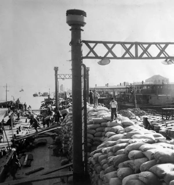 1958年,汉口码头,长江航运管理局把从四川运来的粮食装船运到上海去。