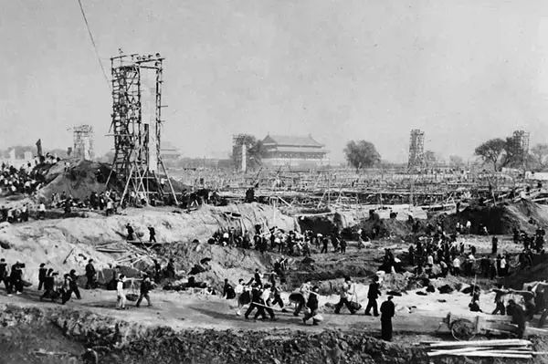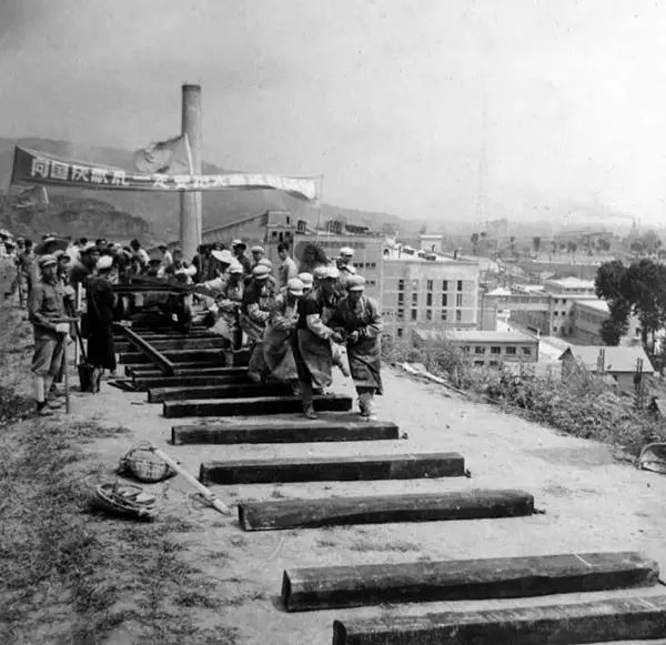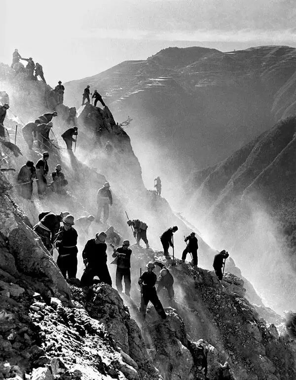 1958年6月, 甘肃引洮河水上山工程 。茹遂初/摄。