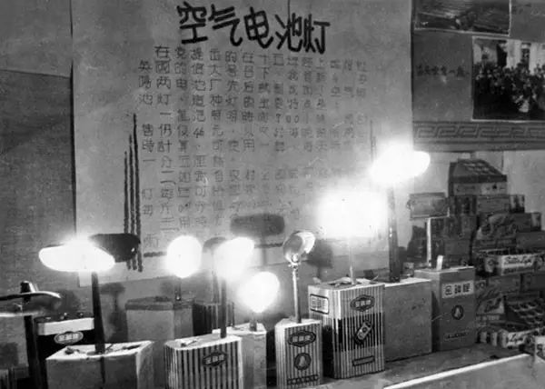 1958年,河南工业、手工业产品展览会上展出不同类型的空气电池灯。