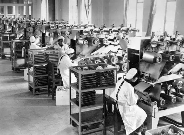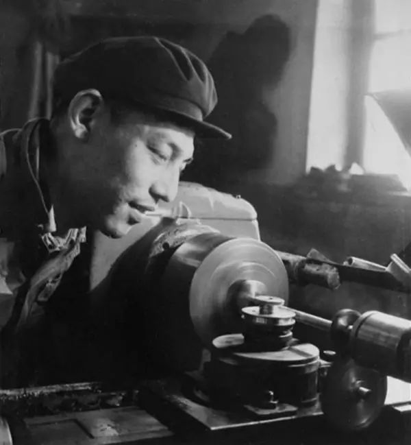 1958年,长春仪器厂车间副主任姜正秀用“四用胎具”在加工齿轮。