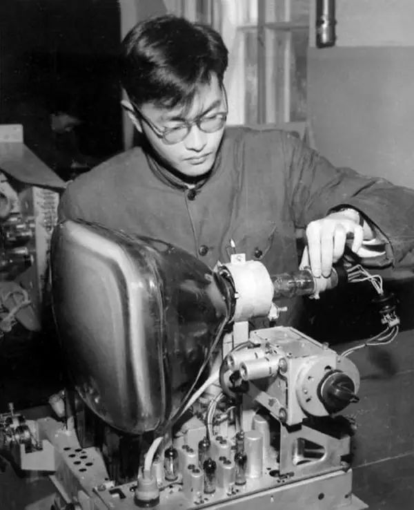 1958年,电视机显像管试制成功,技术员正在测量电视显像管的光电性能。