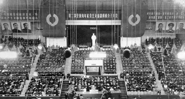1958年,吉林省海龙县梅河口农业生产大跃进誓师大会。