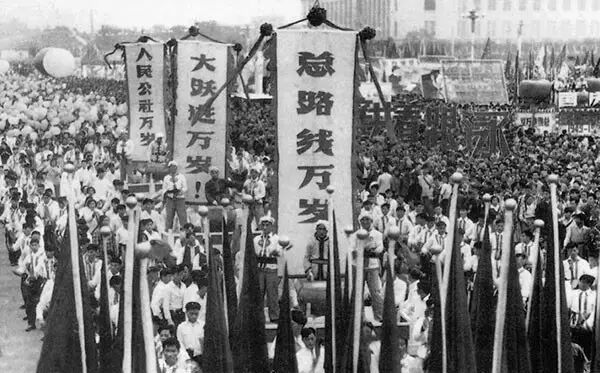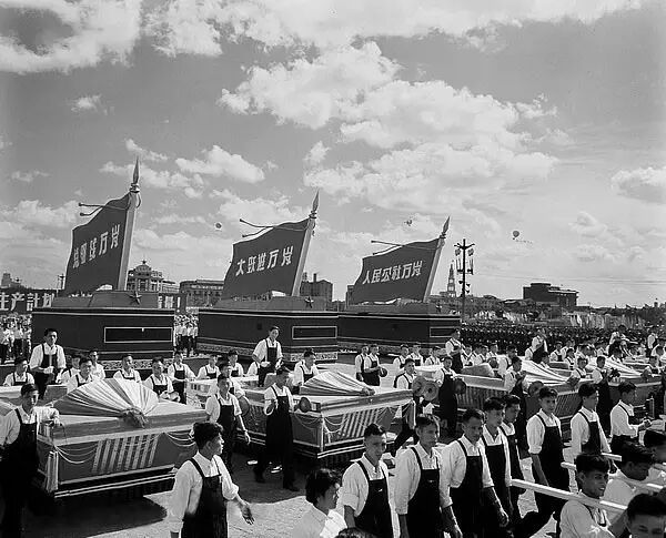 1959年,北京,宣传“三面红旗”的游行队伍。