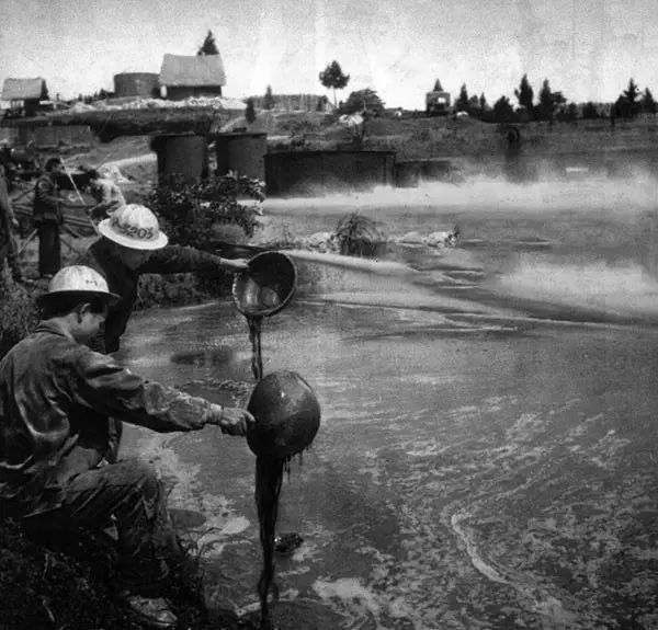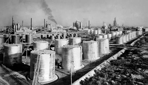 1959年1月,兰州炼油长开始试生产,这是银光闪闪的油罐区。