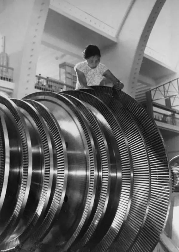 1958年,这是上海汽轮机厂制造的1.2万千瓦汽轮发电机的转子,它是汽轮发电机最精密的部分。