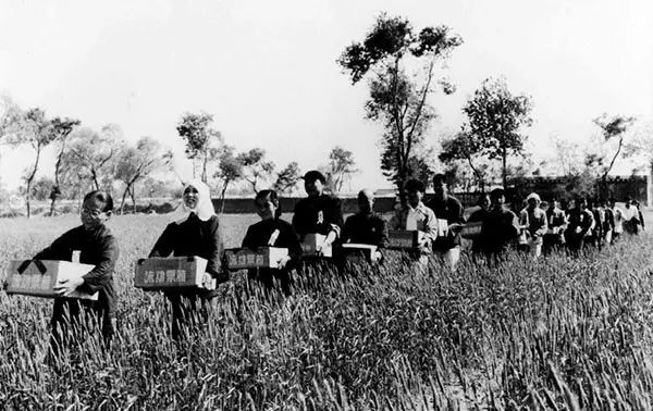 1958年,为了让在田间劳动的居民行使民主权利,北京市宣武区站的流动票箱来到了田间,让他们在田间投票。