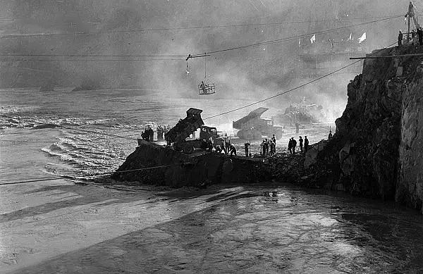 1959年, 三门峡水利工程截流时刻 。魏德忠/摄。