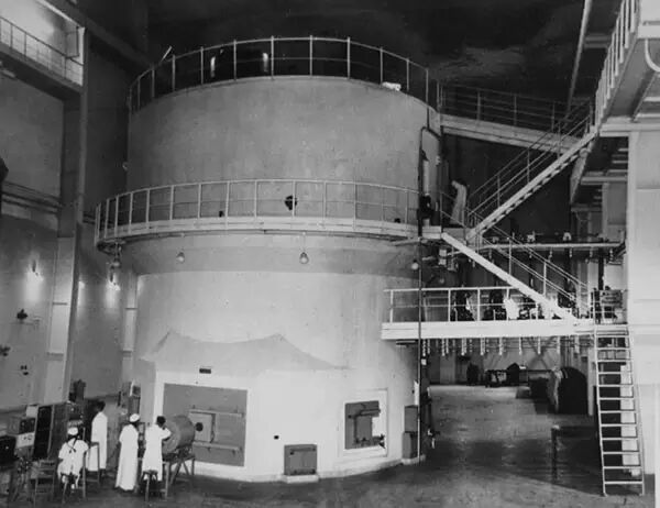1958年,我国第一座实验性原子反应堆和回旋加速器已经建成,这是新建成的实验性原子反应堆。