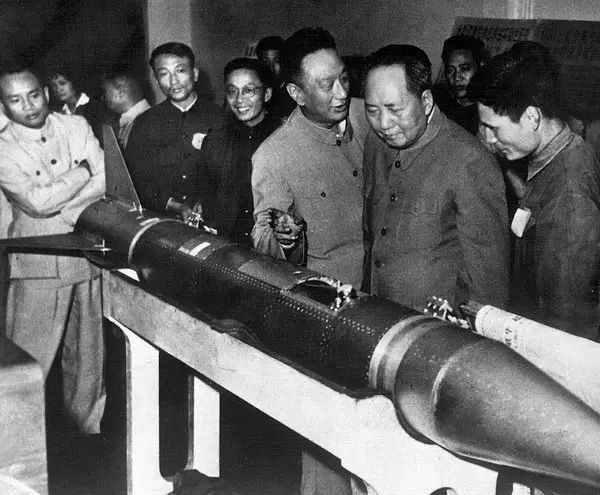 1960年5月28日,毛泽东参观了上海新技术展览会,观看了中国首次发射成功的试验型探空火箭。