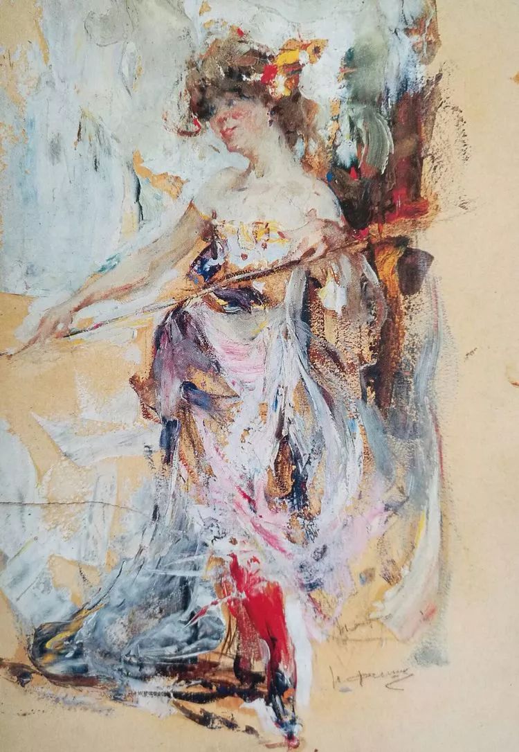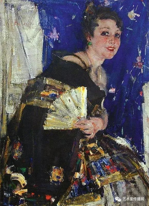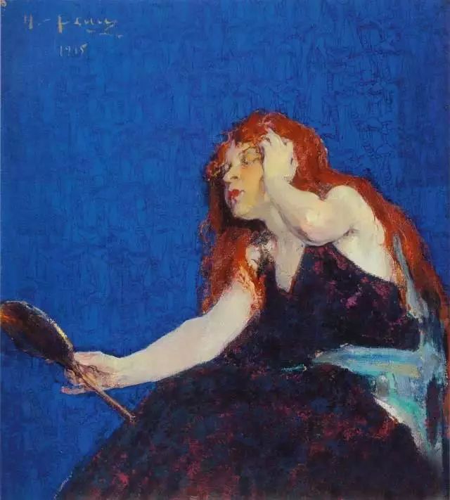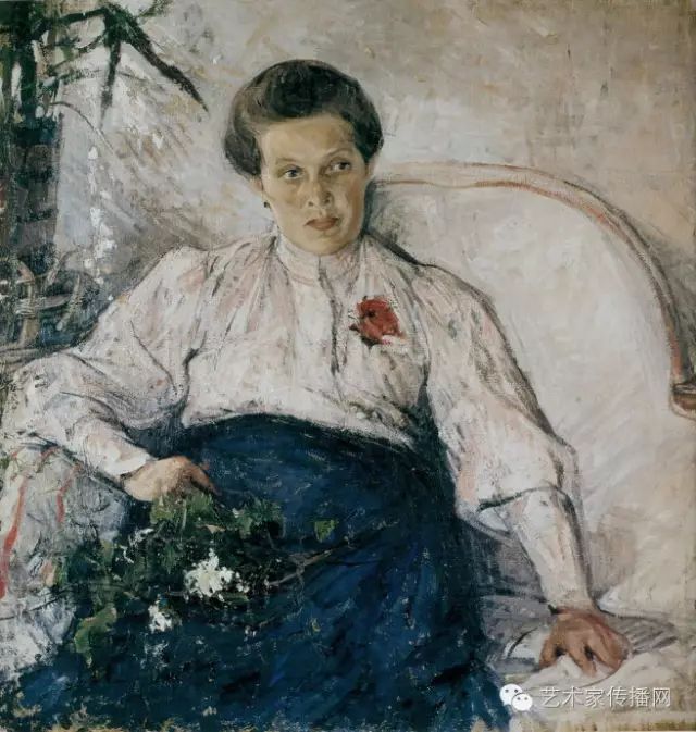 使他成名的第—件肖像画作品《紫衣夫人》(又名《无名女士肖像》),1908年在慕尼黑国际博览会上获得了小金奖。
