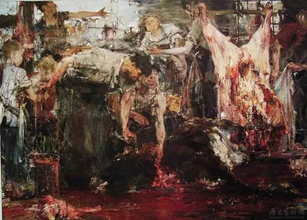 特别欣赏的是费欣的油画采用的是直接画法,画布底子做得很好。布对油的吸收性很强,这样一来油画就干得快。费欣画画多先画素描小稿,然后上色做稿样布局,确认后再制作成 巨幅大型油画。