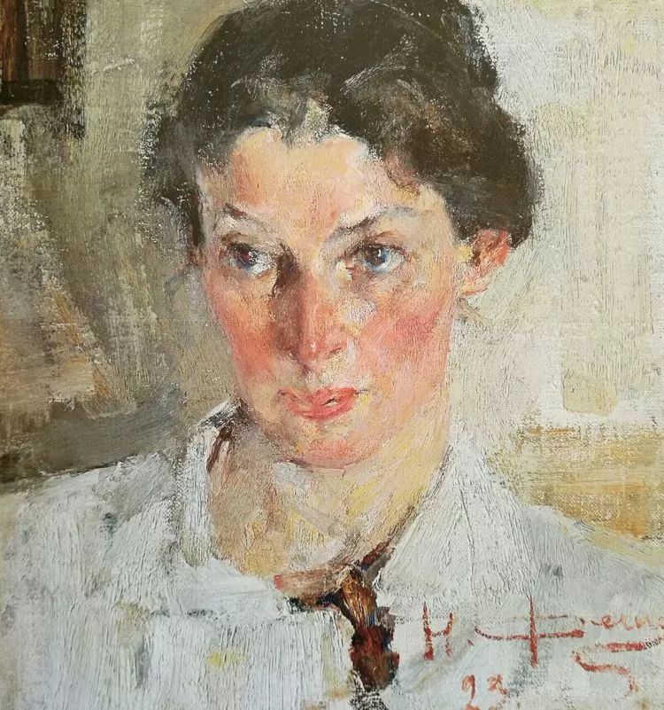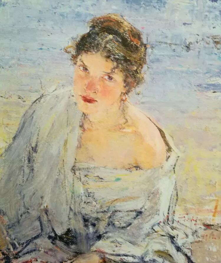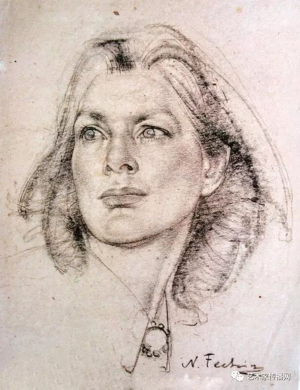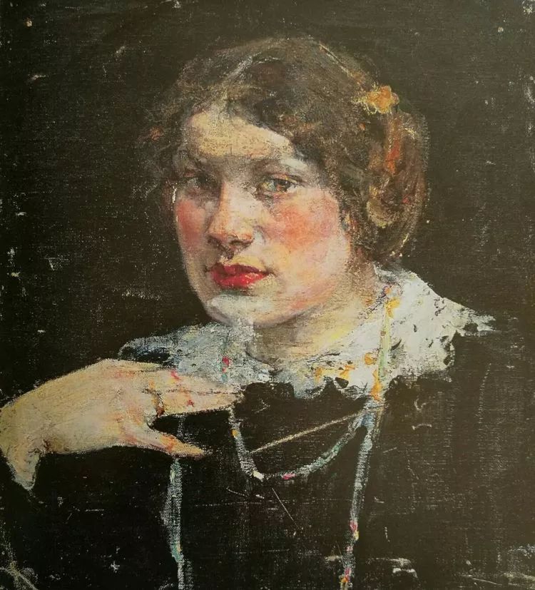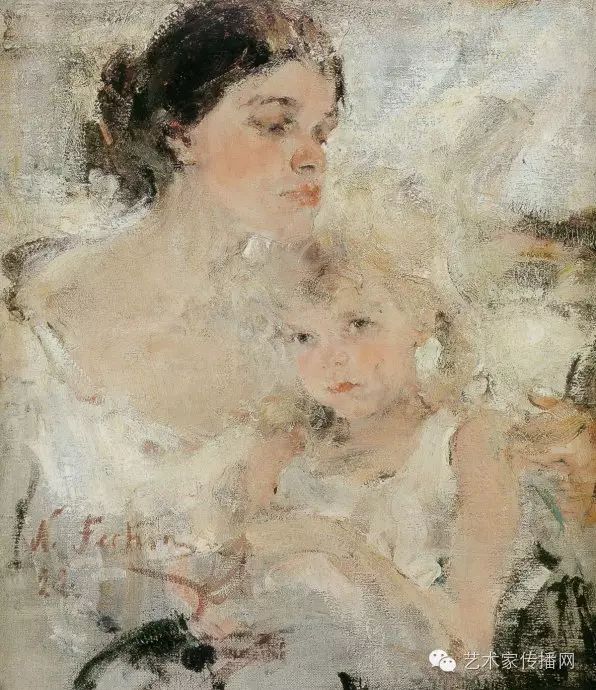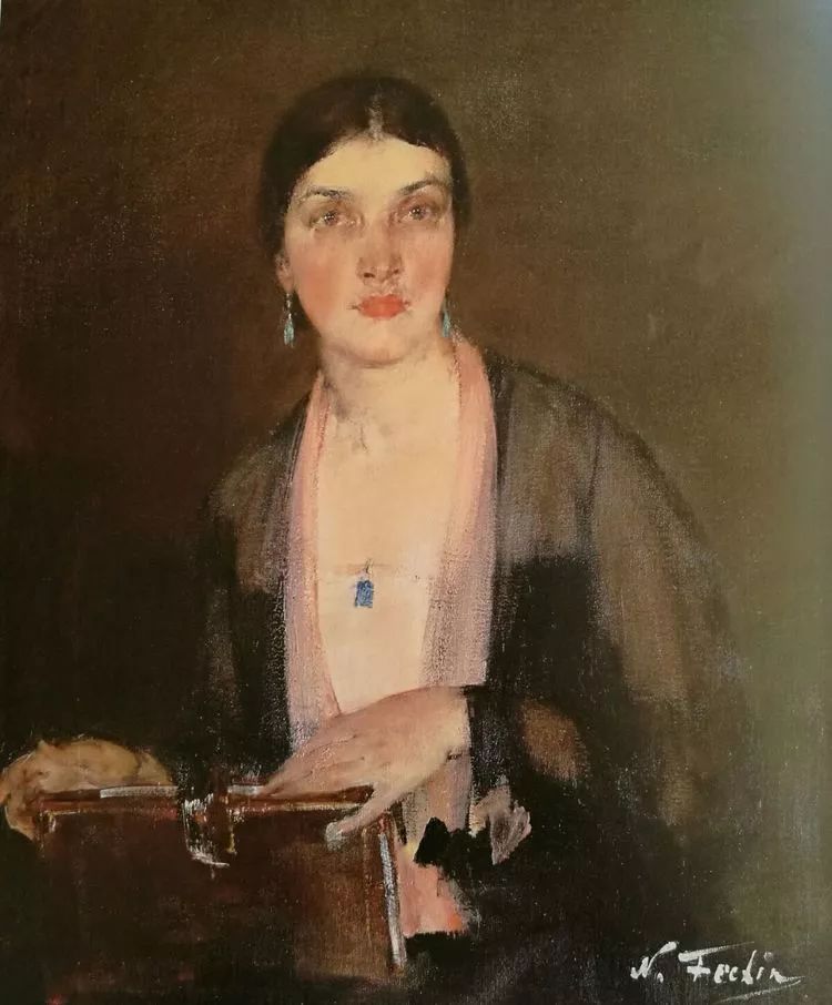 1914年费欣创作了《瓦丽雅·阿多拉斯特卡娅肖像》,洁净珍珠般的色彩,完美的现实主义形式都表现在这幅作品里。