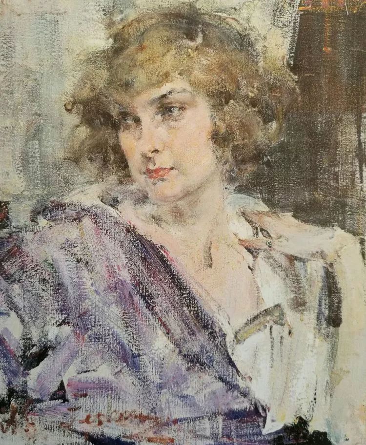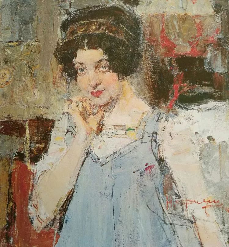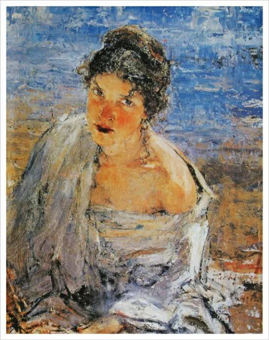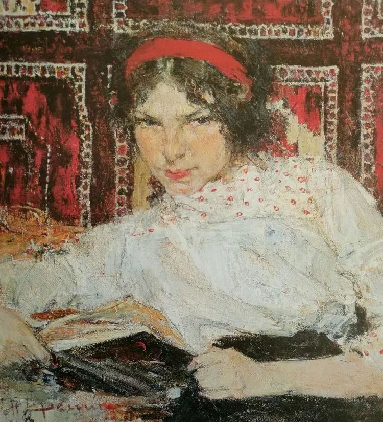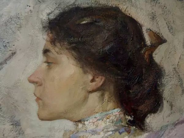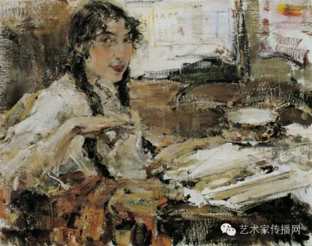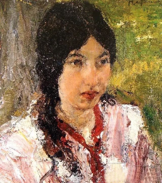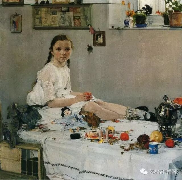 1914年费欣创作了《瓦丽雅·阿多拉斯特卡娅肖像》,洁净珍珠般的色彩,完美的现实主义形式都表现在这幅作品里。