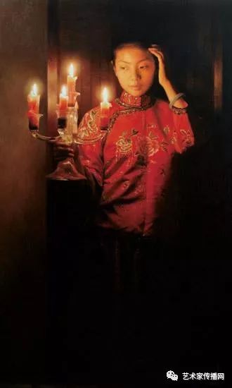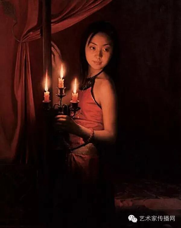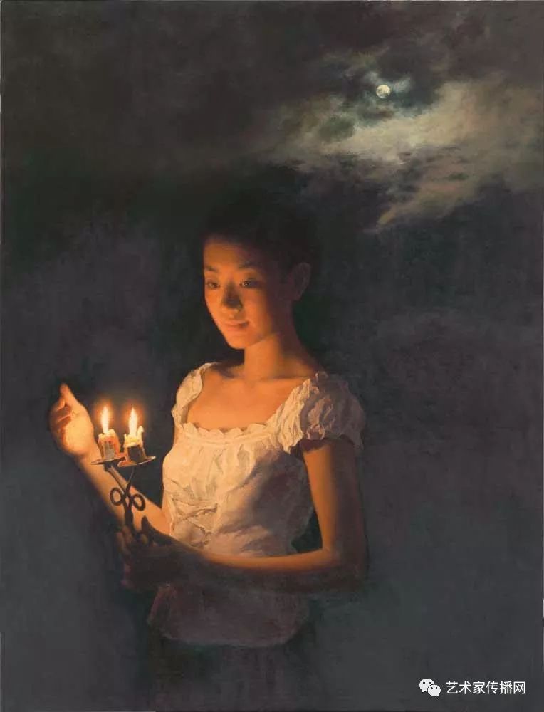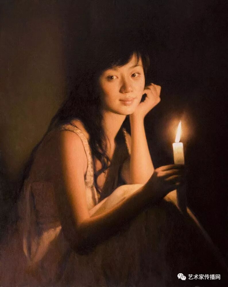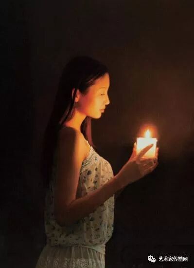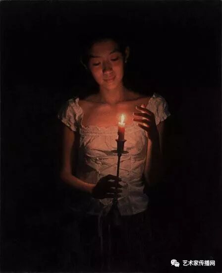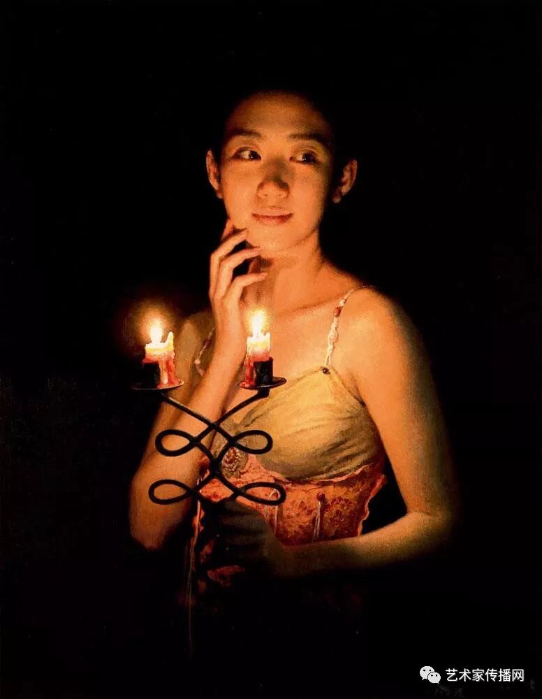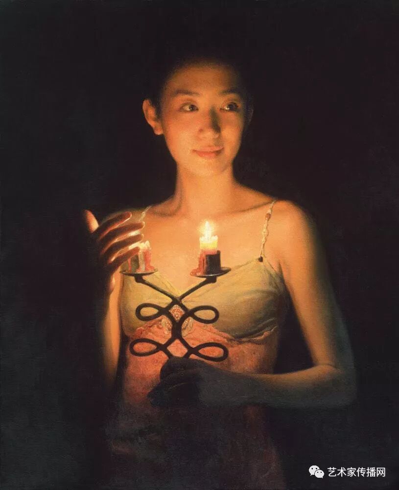 如此便形成了“烛光系列”的绘画。另外,也可能因为自己是教师的缘故,我对上学时歌颂教师的“蜡炬成灰泪始干”这句诗有着很深的印象,蜡烛燃烧自己,照亮别人,这种奉献精神,这种品格本身也是一种完美,在我的内心深处始终充满着对理想的追求,所以在之后的创作中,“烛光”便一直都是我所偏好的一个题材。