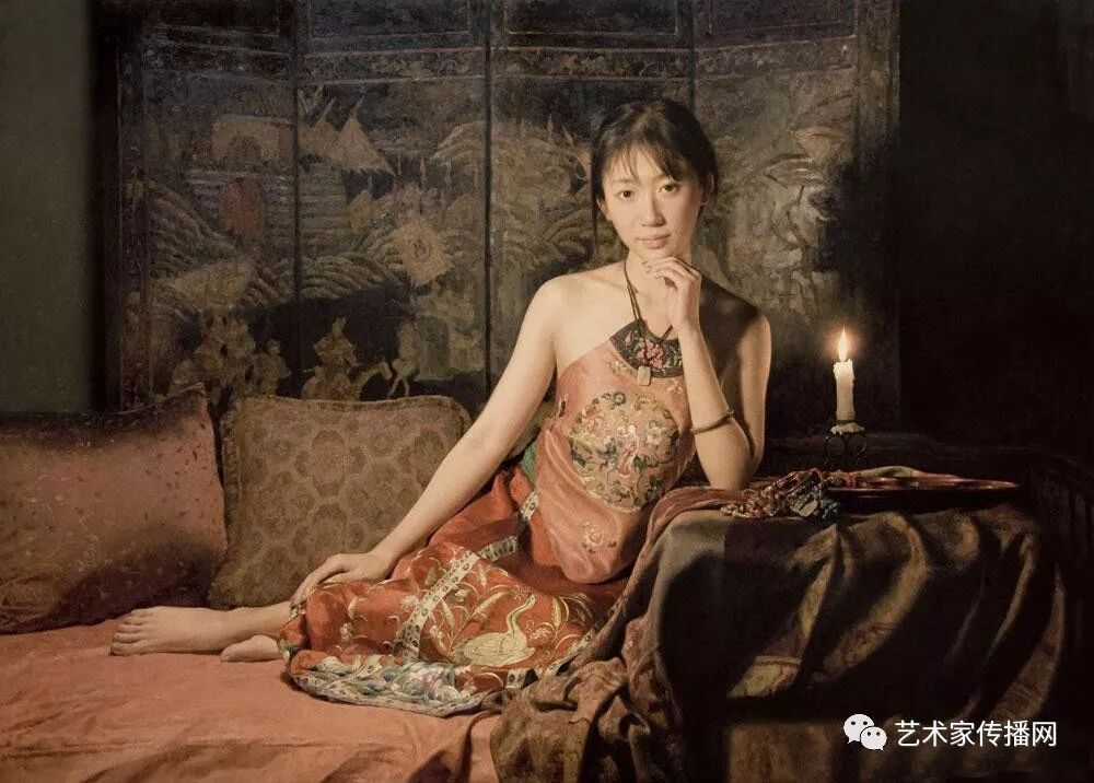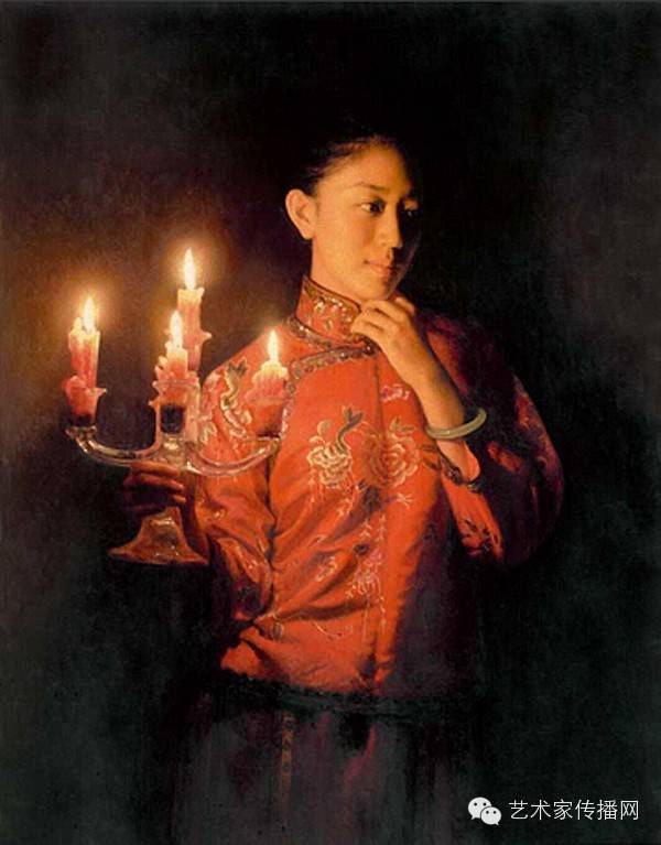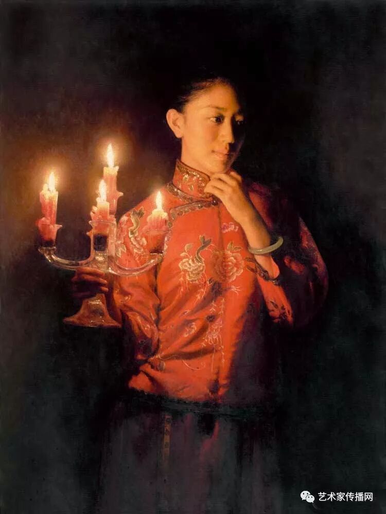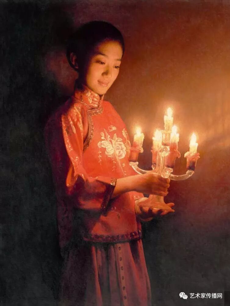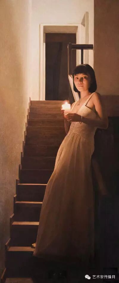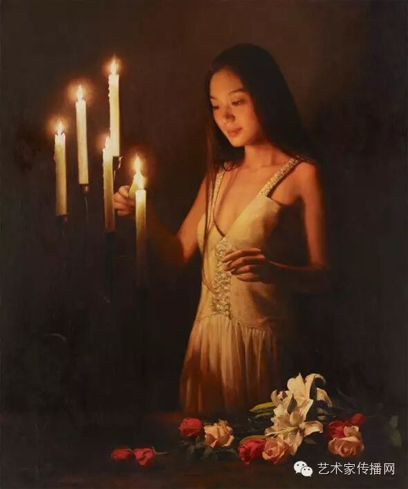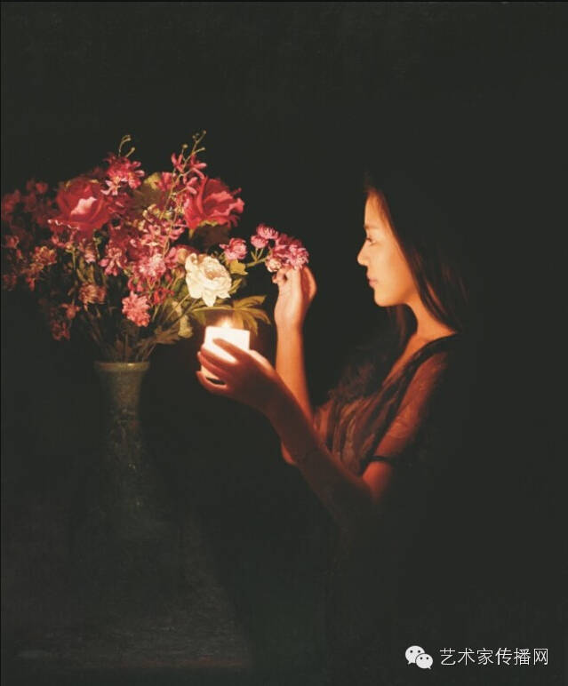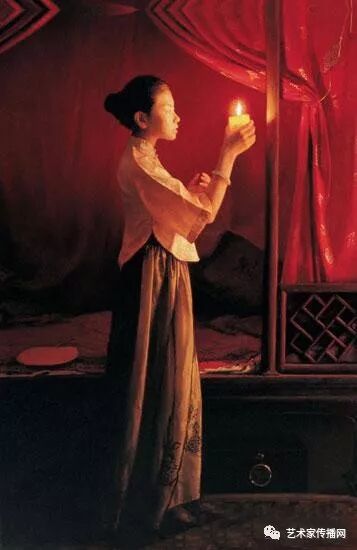 如此便形成了“烛光系列”的绘画。另外,也可能因为自己是教师的缘故,我对上学时歌颂教师的“蜡炬成灰泪始干”这句诗有着很深的印象,蜡烛燃烧自己,照亮别人,这种奉献精神,这种品格本身也是一种完美,在我的内心深处始终充满着对理想的追求,所以在之后的创作中,“烛光”便一直都是我所偏好的一个题材。