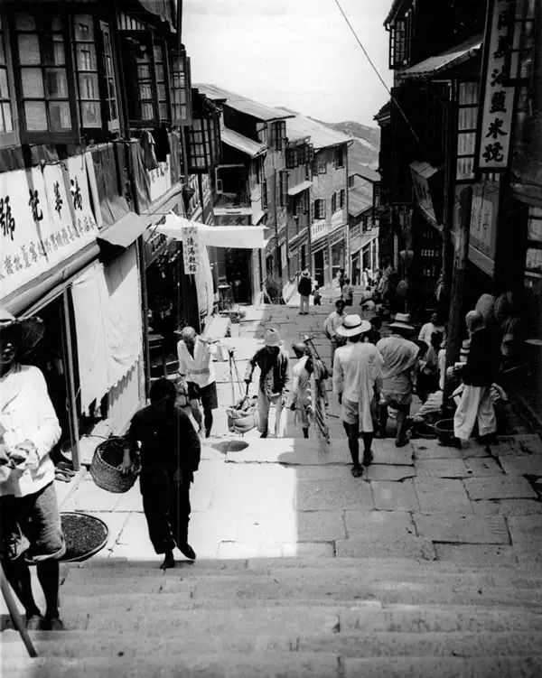 1934年,重庆,山城街道上来往的行人。