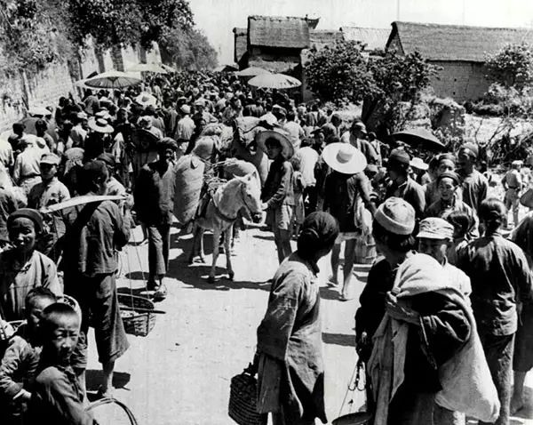1948年,涌向救济署领取馒头的灾民。