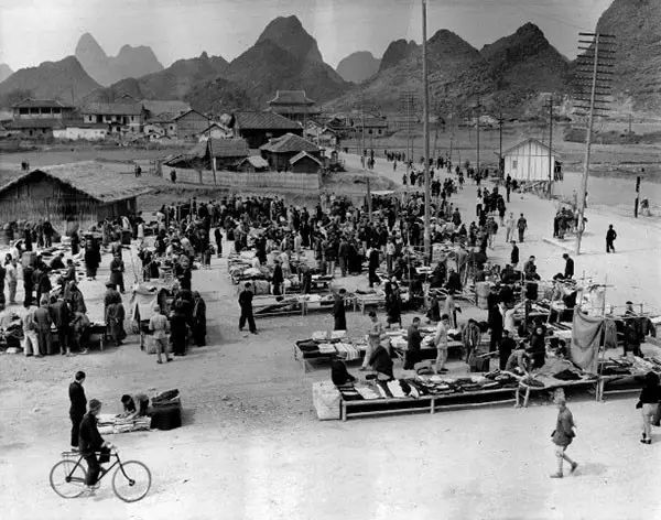 1944年,桂林,露天市场上忙碌的景象。