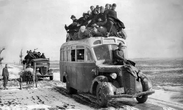 1940年,从北平开往天津的汽车。