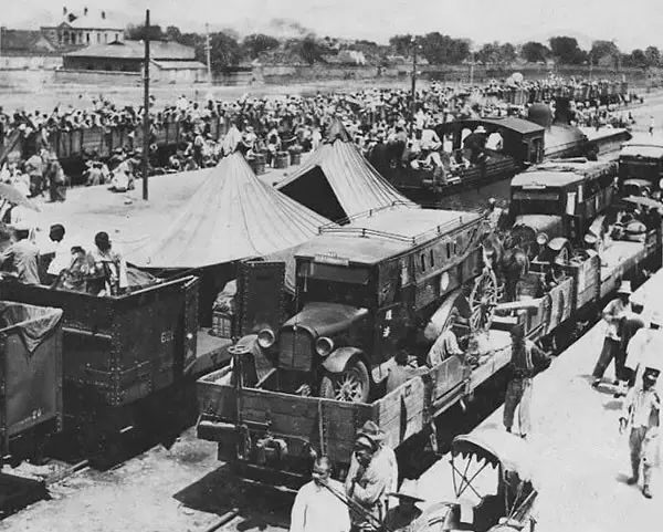 1930年,军阀内战,用火车拖运武器装备。