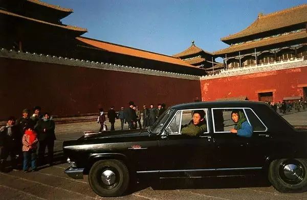 1984年,北京故宫,在轿车里拍一张纪念照。久保田博二/摄。