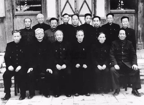 1949年,中华人民共和国政府的第一届领导人、出席政协第一届全国委员会会议的中共代表在中南海合影。
