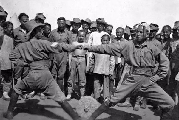 1902年,威海卫海滩上,华勇营的士兵正在进行比武。