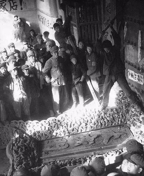 1966年,山东曲阜,红卫兵在孔庙捣毁“大成门”。