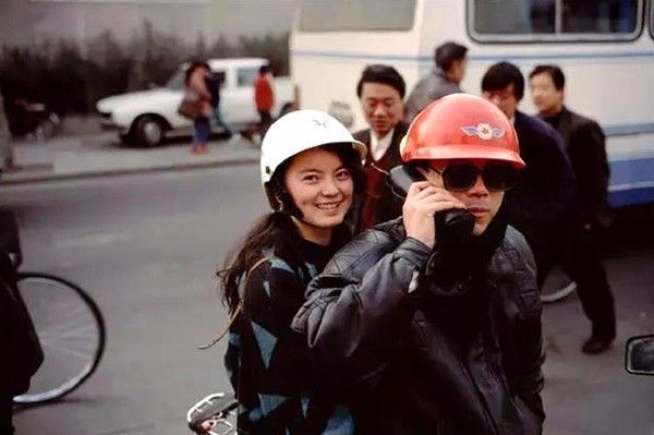 1993年,上海,骑摩托、戴墨镜的摩登青年拿着大哥大打电话。