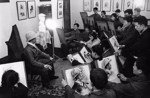 1974年,“文革”时的工人画家在上海文化宫工作室画画。