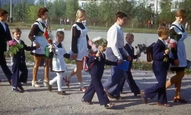 苏联一年级小学生开学,老师们还专门开欢迎会。