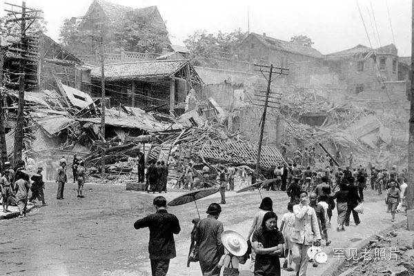 1941年5月,重庆,被日军敌机炸毁的房屋。