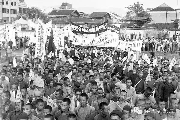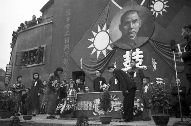 1945年9月,重庆,庆祝抗战胜利,蒋介石穿着军装与市民同庆。杰克·威尔克斯/摄。