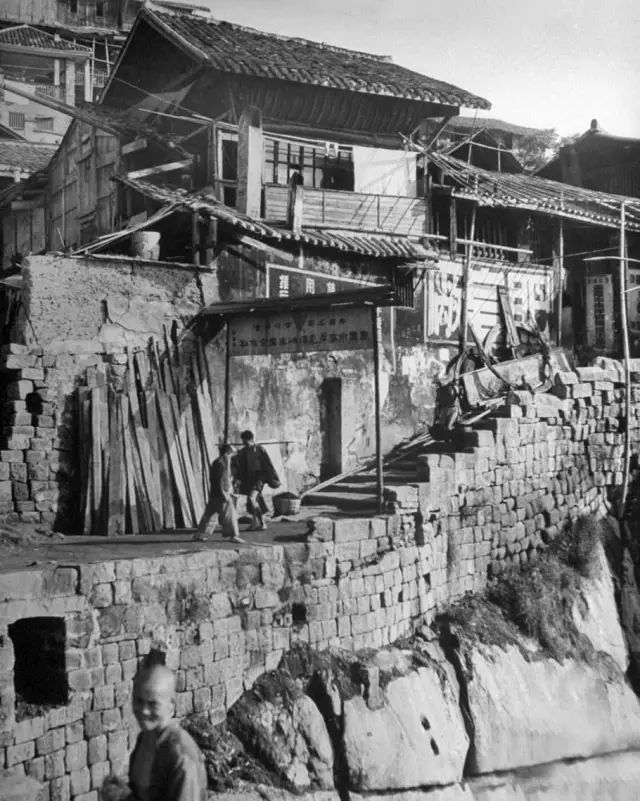 1945年9月,重庆,长江堤岸上的民居。杰克·威尔克斯/摄。