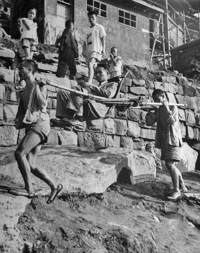 1945年9月,重庆,滑竿轿子。杰克·威尔克斯/摄。