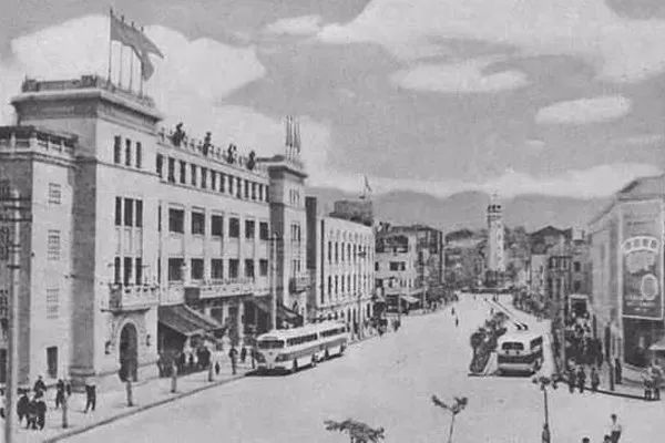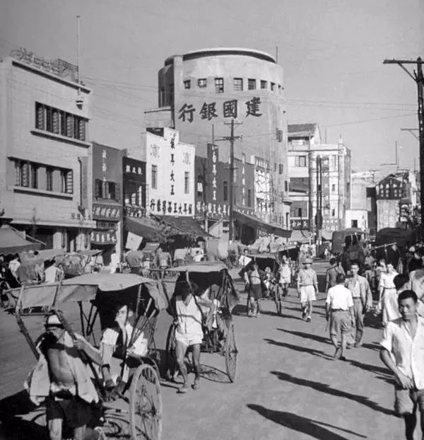 1944年,重庆,重建的建国银行。这里就是今天民族路往朝天门方向十字路口的小广场所在的位置——民族路2号。