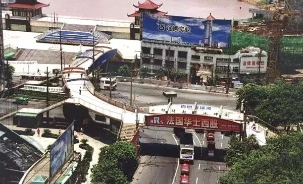1980年代,重庆,临江门天桥,旁边的魁星楼刚开建。